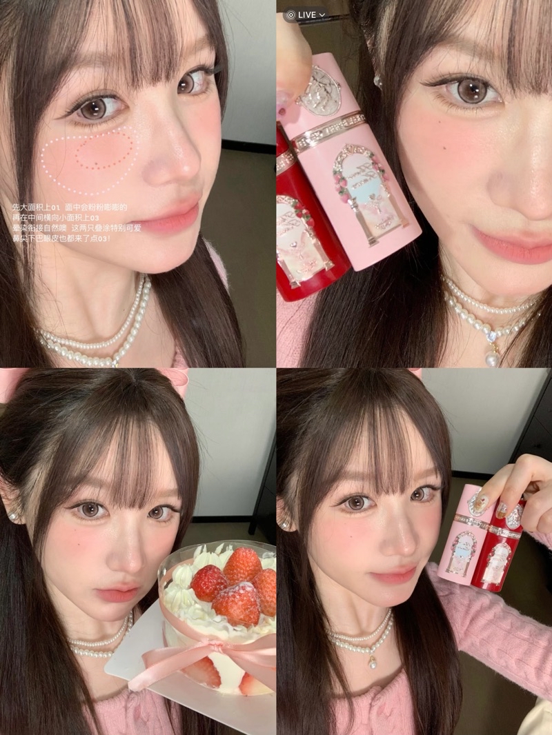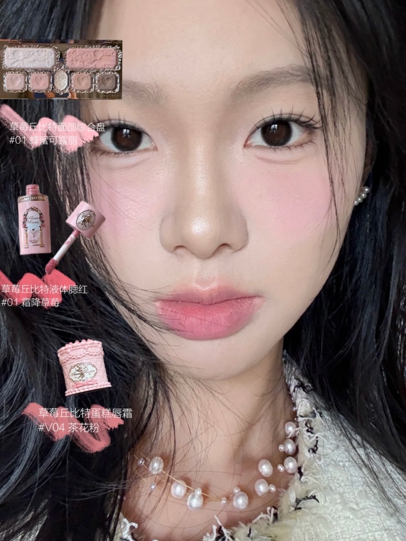 🍰💘花知曉草莓丘比特系列✌🏻阿里北北聯名液體腮紅 蛋糕唇霜 面部綜合盤 粉餅 手持鏡 香膏掛件 香水 護手霜
