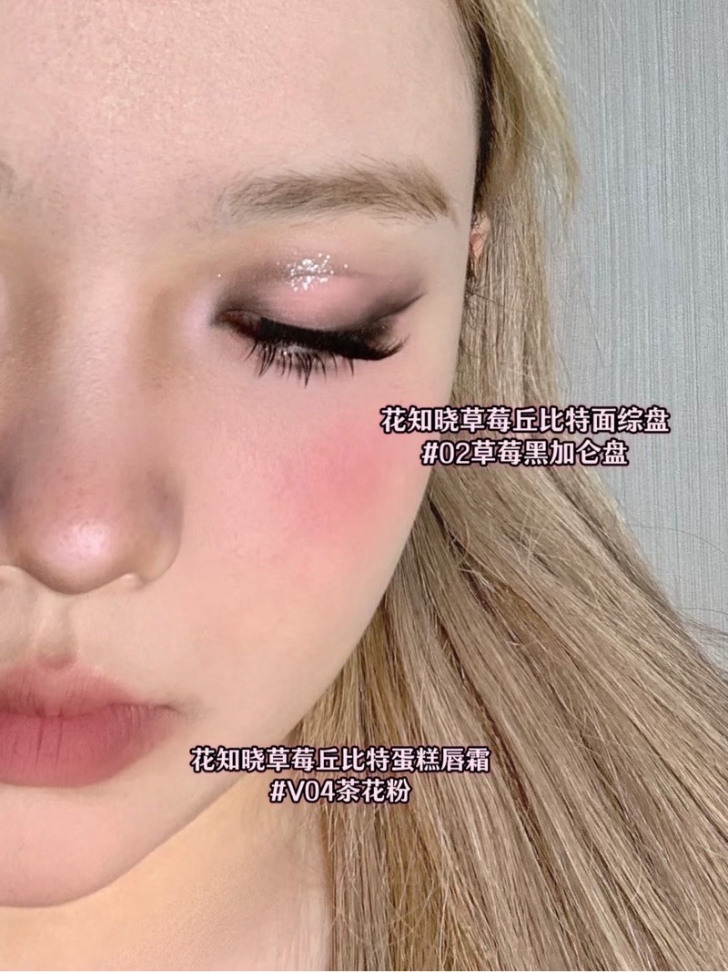 搭配雪粉白啞光高光+橡皮灰粉腮紅色