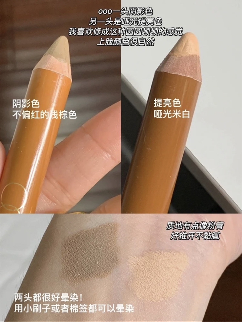 雙頭修容筆🤎把修容和提亮做成筆!ooo真有你的!鉛筆形狀可以更精準的畫出範圍!終於不會再畫的歪七扭八的了😭😭除了可以修鼻子還可以直接當唇線筆!修飾人中、畫微笑唇 樣樣都可以!提亮那頭還可以塗在凹陷處!讓臉澎起來!也可以當遮瑕提亮唇周嘴角暗沈🤲🏻🤲🏻