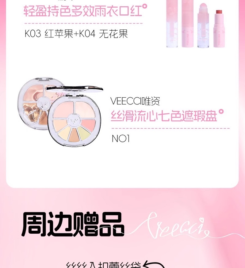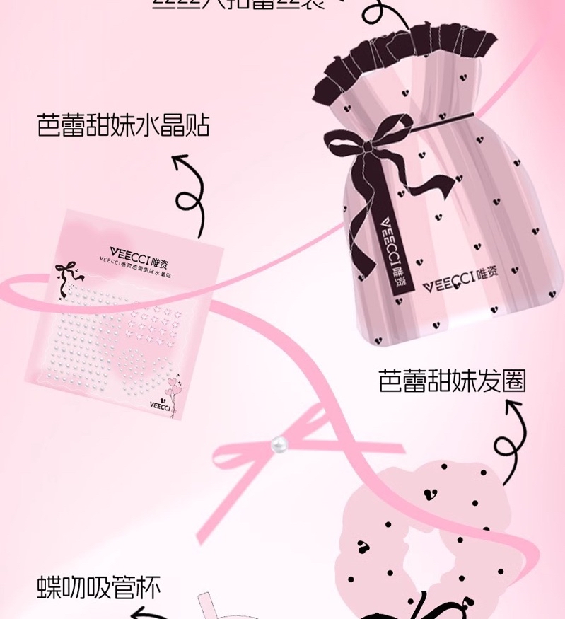 七色遮瑕盤N01、絲絲入扣蕾絲袋周邊、芭蕾甜妹水晶貼周邊、芭蕾甜妹髮圈周邊、蝶吻吸管杯周邊