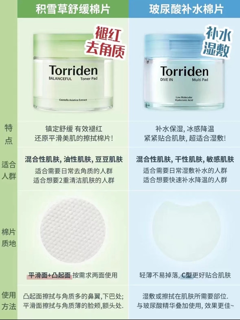 闆實錄🐇Torriden桃瑞丹玻尿酸保濕補水棉片/積雪草舒緩棉片🩵💚